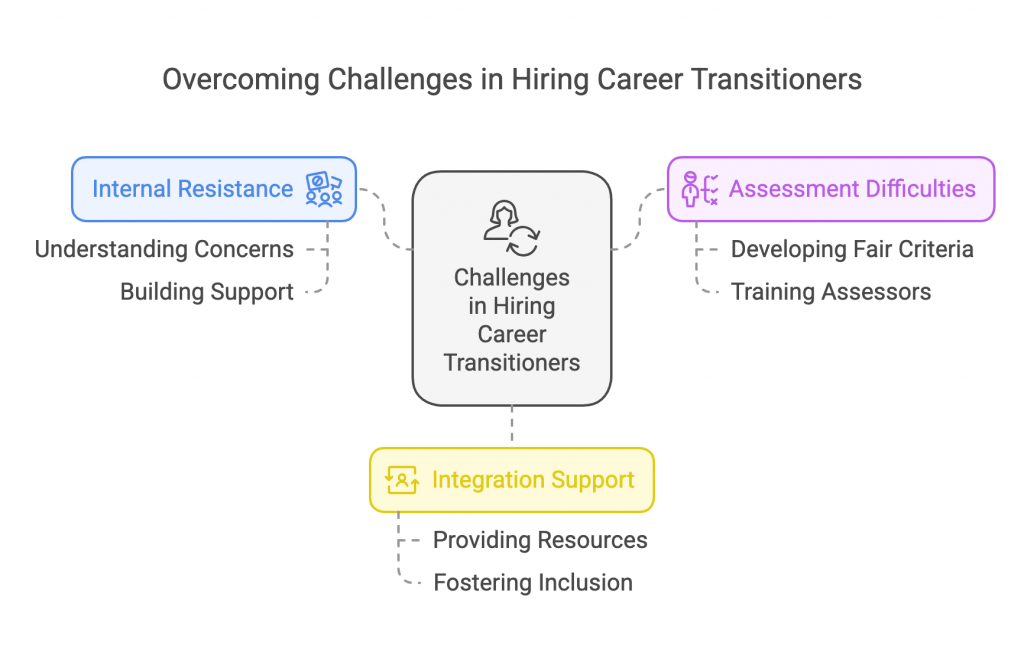 Solution: Implement pilot programs and share success metrics from other organizations that have successfully integrated career transitioners.